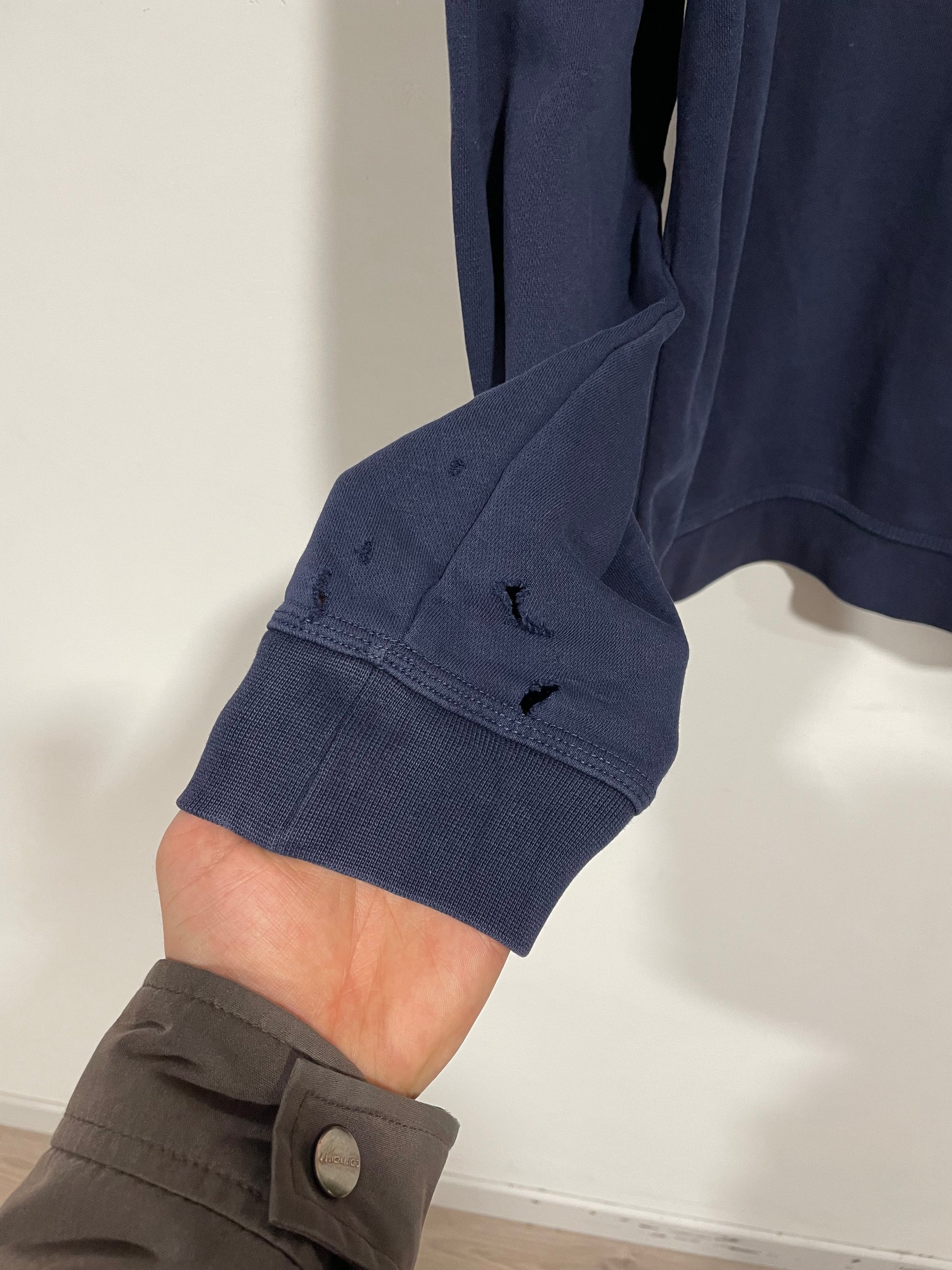 presenta una macchiolina su manica e un paio di buchetti sul polsino come da foto, per questo motivo svendo a 15€‼️